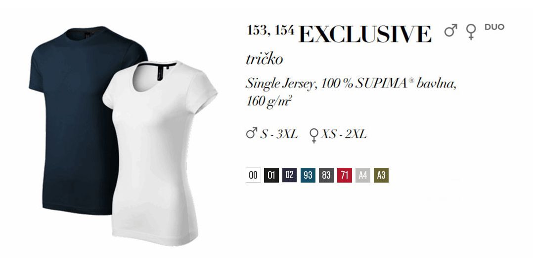 Vyzkoušejte naše dámská a pánská trička EXCLUSIVE, vyrobená z prémiové bavlny SUPIMA®, a užijte si pocit opravdového luxusu.