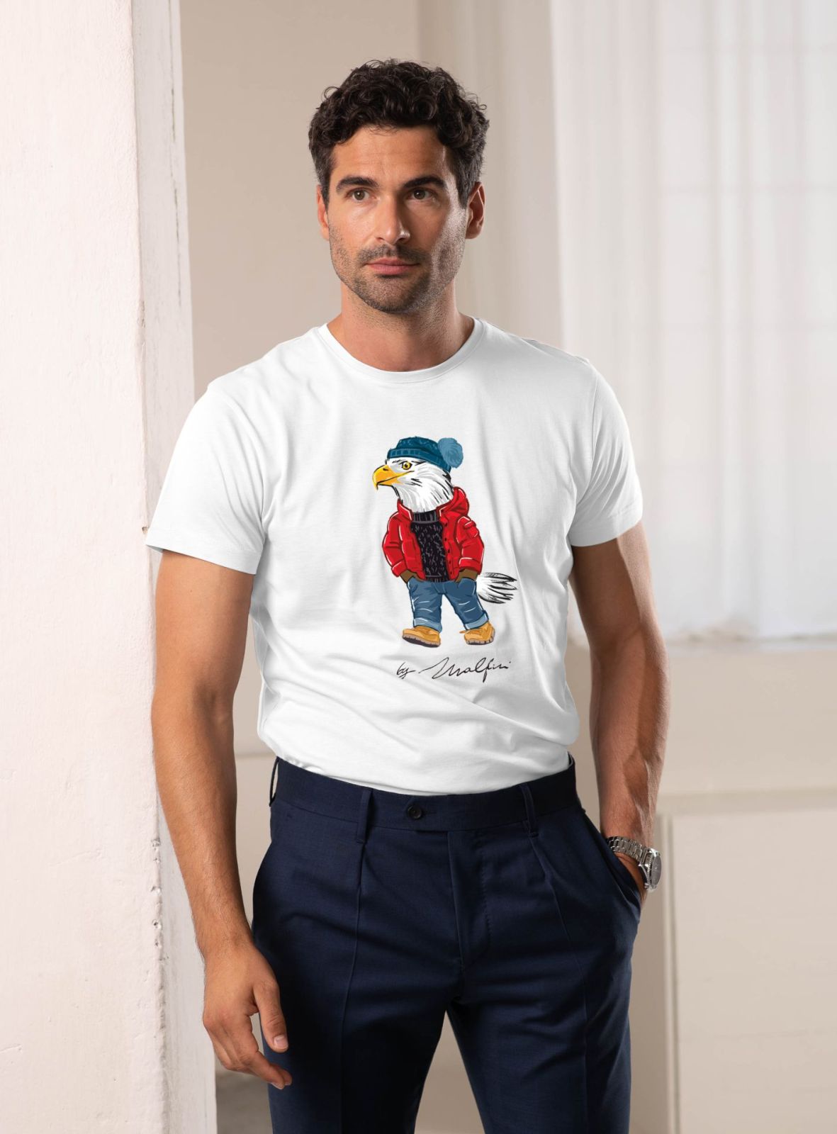 Ilustrowane orły w ekskluzywnym wzornictwie. Wybierz jeden z czterech unikalnych motywów nadrukowanych na koszulkach Exclusive z kolekcji MALFINI Premium.