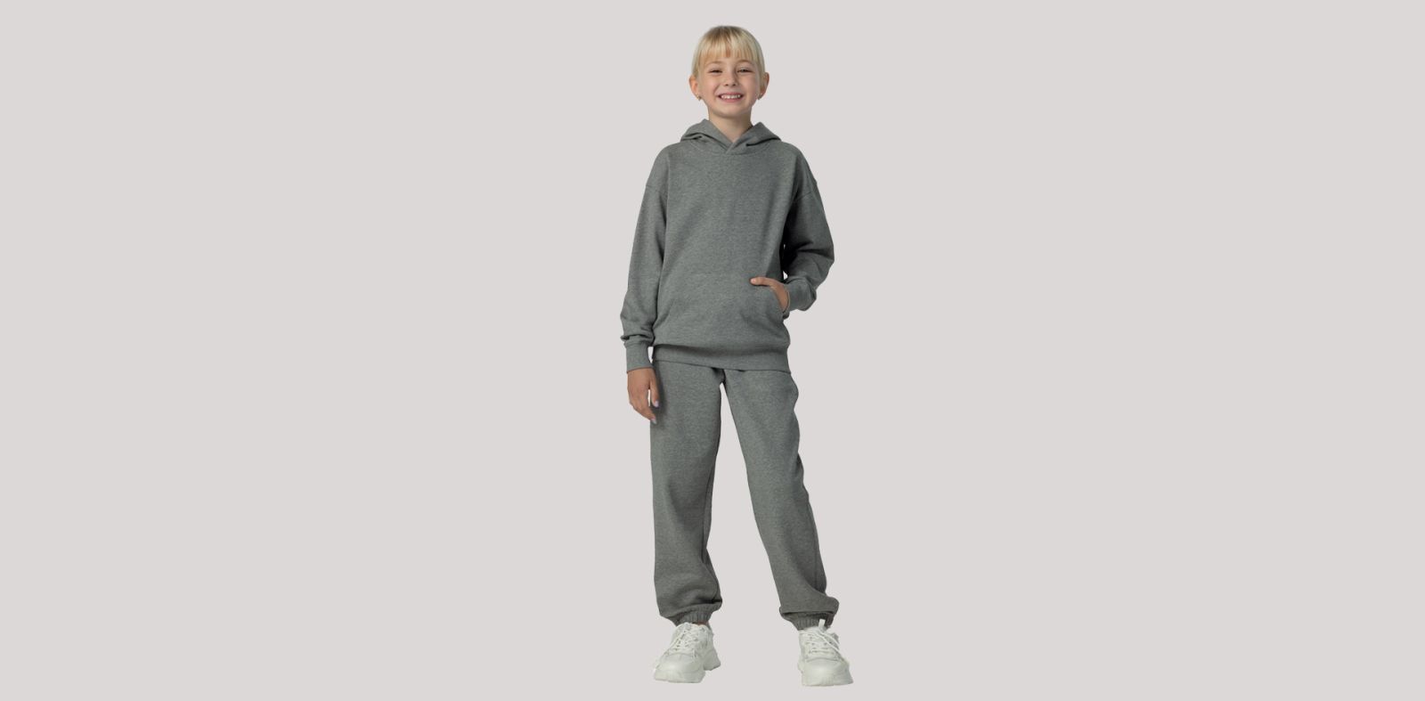Zastosowana dzianina dresowa z czesaną stroną wewnętrzną gwarantuje miękkość i komfort cieplny, który dzieci docenią podczas całodziennego noszenia. Mieszanka bawełny i poliestru o gramaturze 280 g/m² zapewnia trwałość, stabilność kształtu oraz długą żywotność nawet przy częstym praniu.