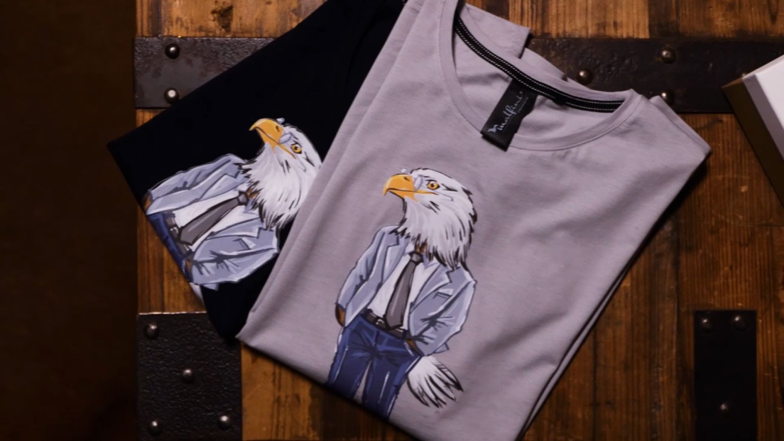 Vulturi ilustrați într-un design exclusivist. Alegeți dintr-un total de patru modele unice imprimate pe tricourile Exclusive din colecția MALFINI Premium.