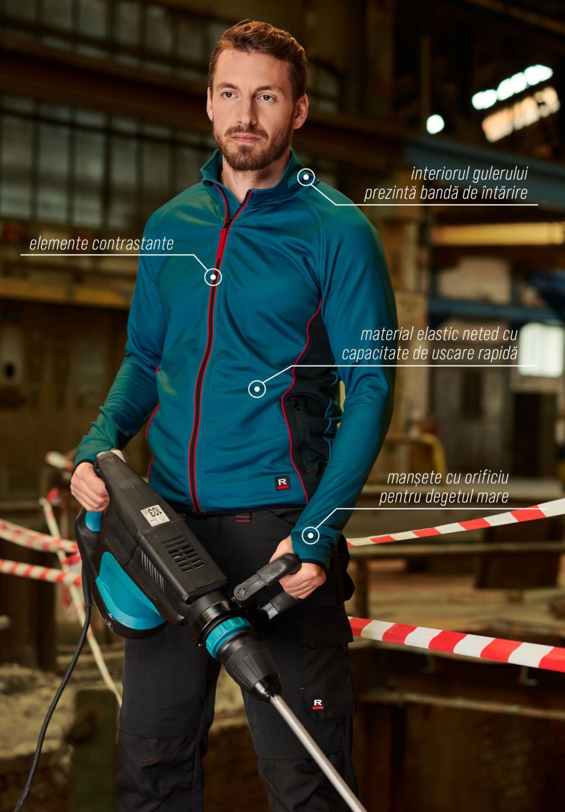 Un hanorac pe care îl puteți purta la locul de muncă în condiții dificile, precum și în timpul activităților de zi cu zi. Este confecționat din tricot față-verso, fiind astfel foarte plăcut la atingere pe ambele părți. Gulerul, tivul și manșetele sunt confecționate din material raiat, iar mânecile au și manșete asimetrice cu orificiu pentru degetul mare pentru confort termic.